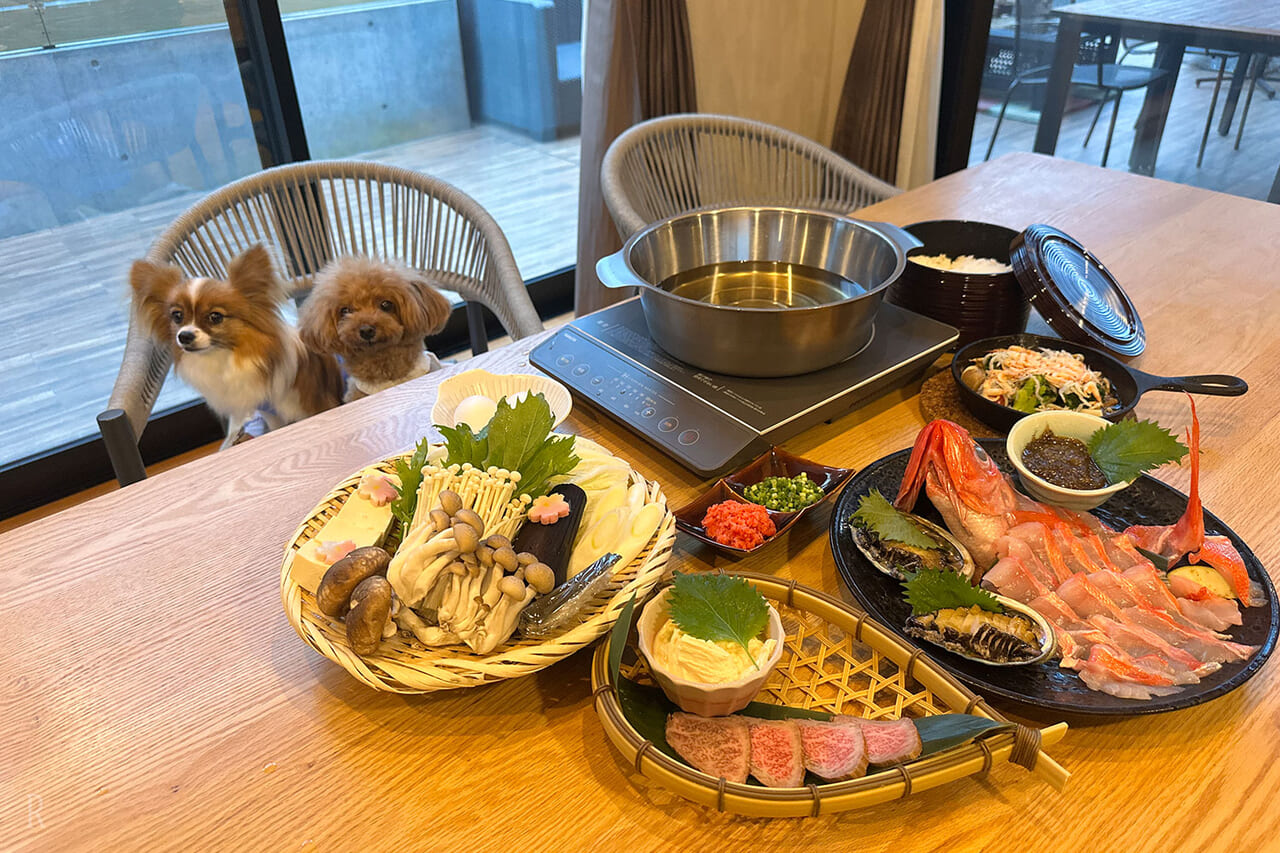 わんちゃんのお食事も健康を考えた上質なものをご用意し、お部屋で一緒にとることができます。