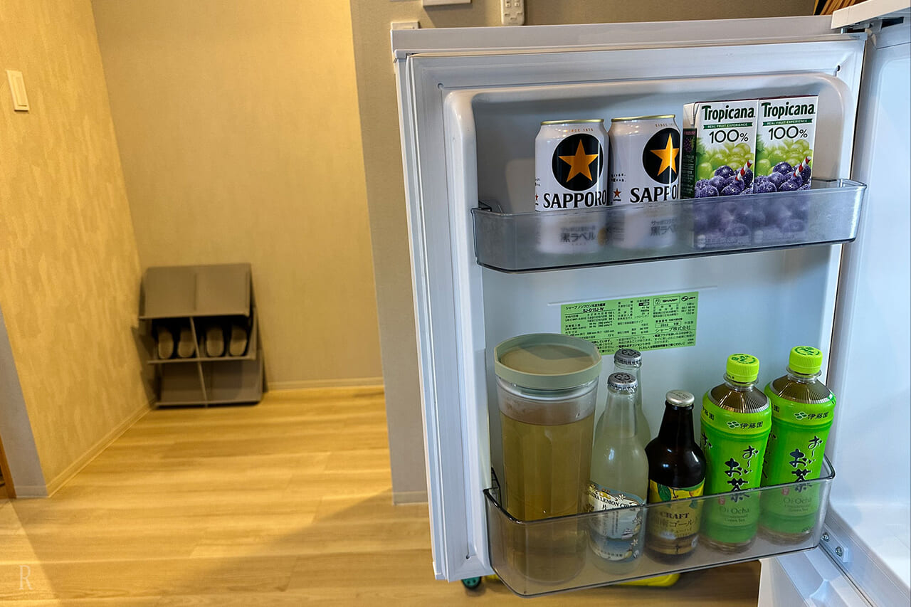 冷蔵庫にはフリードリンクのサービスが。持ち込みもOK!