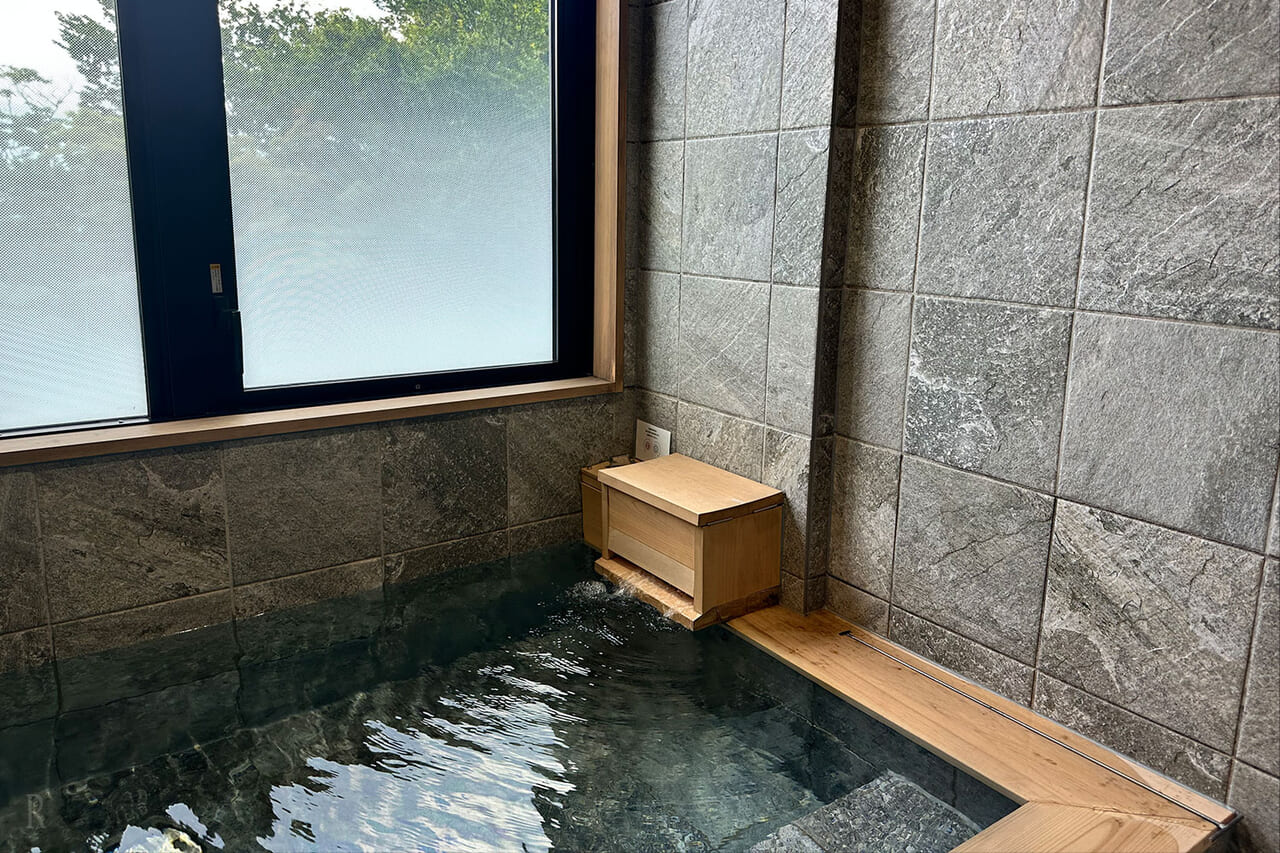 「モリトソラ箱根」ではすべてのお部屋に強羅温泉を配湯。24時間好きな時に、誰にも邪魔されず温泉を堪能できます。強羅温泉は肌に優しい柔らかいお湯が特徴の単純温泉で、疲労回復だけでなく美肌の湯としても有名。お腹もお肌も満たされる贅沢な時間を堪能してくださいね。お風呂上がりはぜひテラスへ。涼しい風が吹き抜け、木々の葉っぱがサラサラと音を立てる心地よい空間で森林浴すれば、より一層リフレッシュできるはずです。